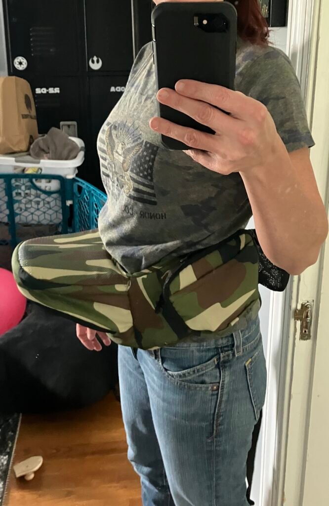 Tip#2 A hip seat. If you have a disabled child that is past the point of toddler and you’re starting to have issues carrying him/her, I highly recommend this nifty carrying “belt” that I got off of Amazon. It’s called a “hip seat”. What I do is wrap it around my waist and then pick Charlie up in a basket carry (like I’m gonna rock him to sleep) and rest his behind on the seat. It takes a bunch of his weight off of my arms so I’m still able to carry him. It’s not going to work for me for too much longer because I’m small and he’s getting bigger. So even if his weight isn’t an issue; his length is starting to be.